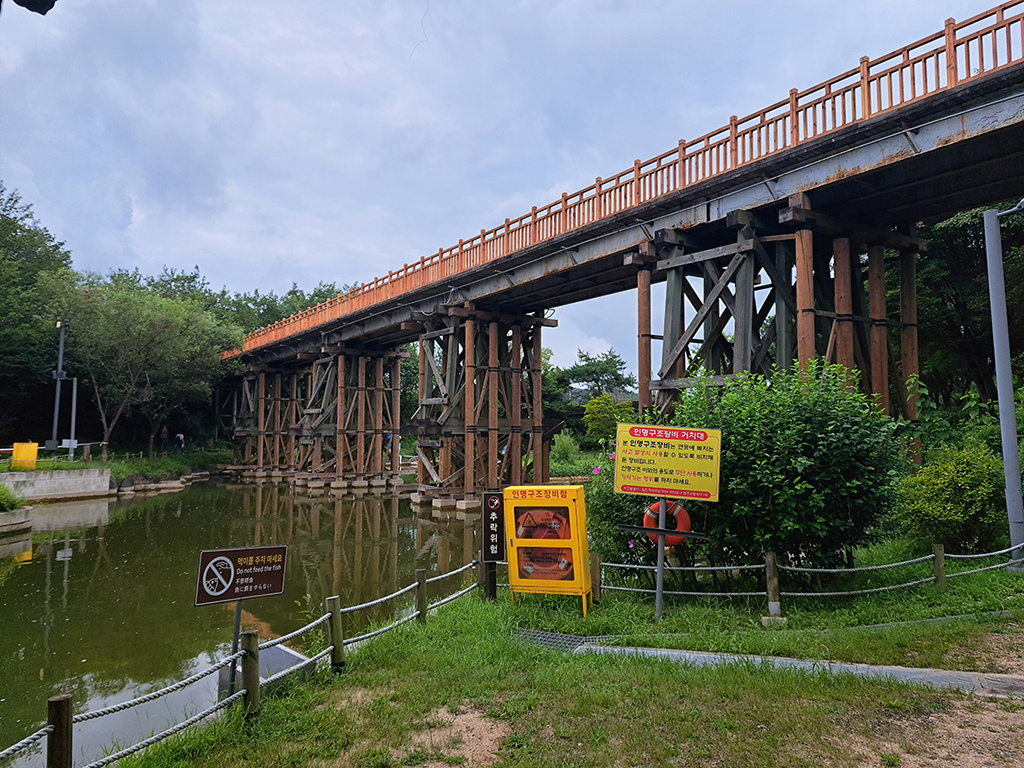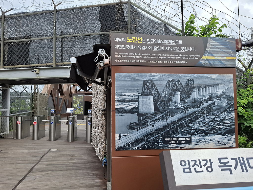 利用朝鮮戰爭期間被炸毀的京義線鐵路東側橋墩,重現了戰前鐵路橋的形態。不過只往前延伸了幾十公尺,是一座供遊客參觀的旅遊橋,可另外收費參觀。在橋入口處寫著:地板上的黃線是平民出入控制線,是韓國唯一可以自由進入的地方。