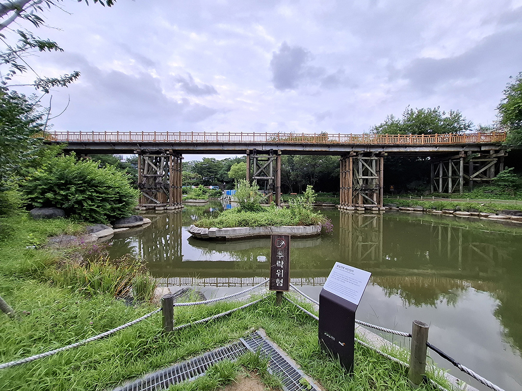 自由橋下的統一池,是一座形狀酷似朝鮮半島的人工池。