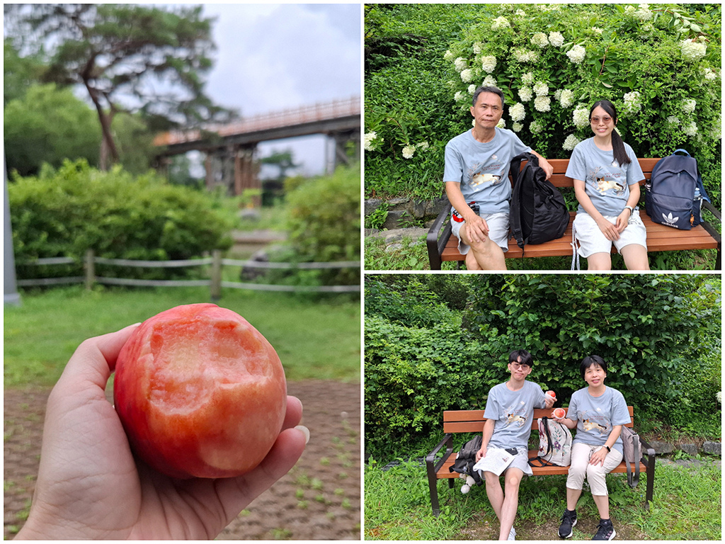 在車上不方便飲食,我們在這享用水蜜桃和早餐。