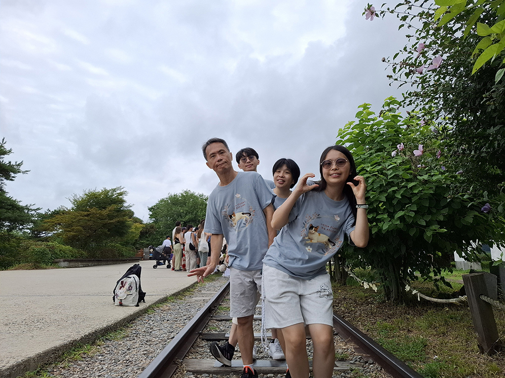 畢竟我們是遊客,看到廢棄鐵軌習慣性搖來拍一張交錯合照。